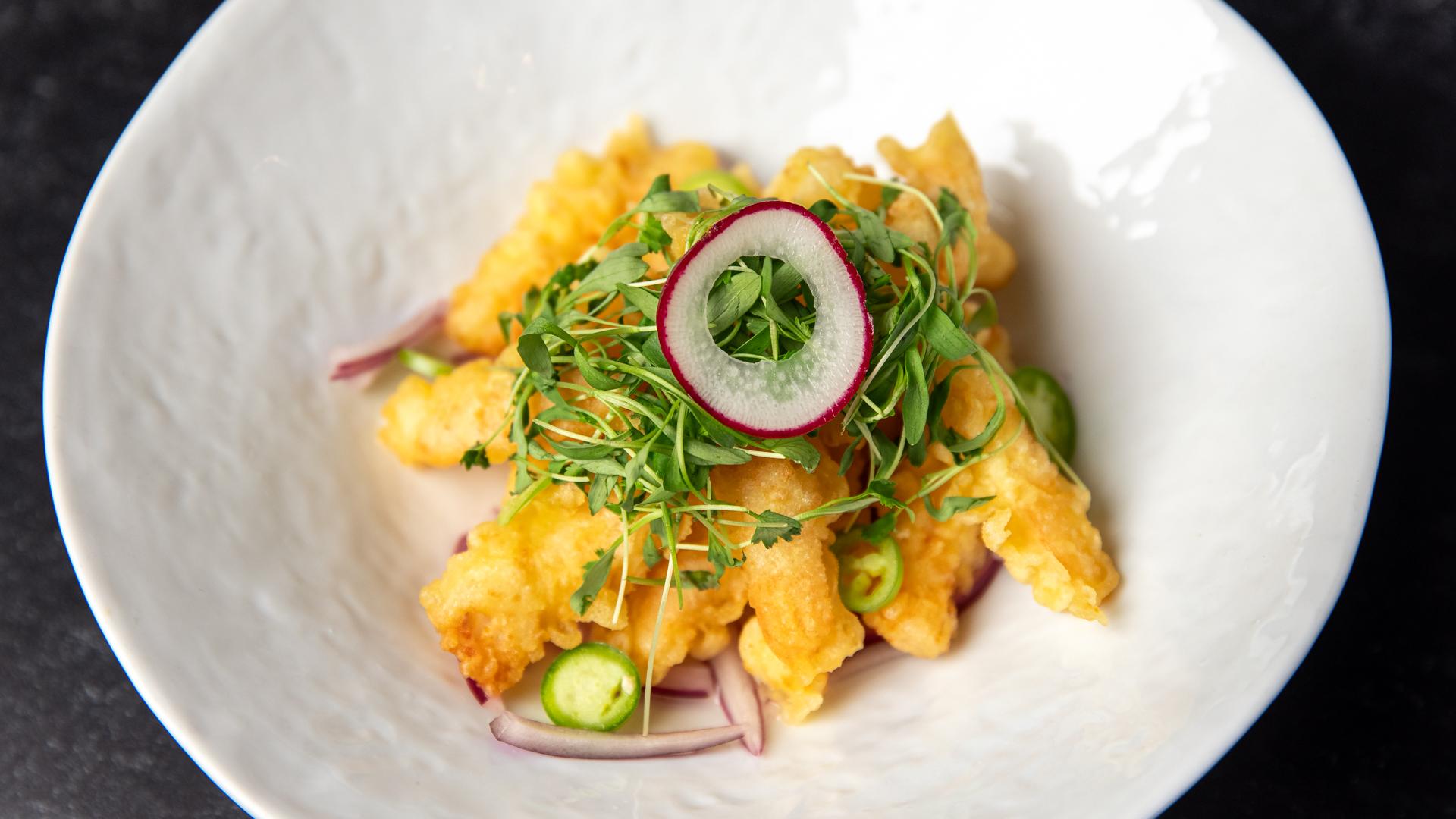 Shrimp or whitefish tempura with jalapeno, cilantro, onion & sweet vinegar