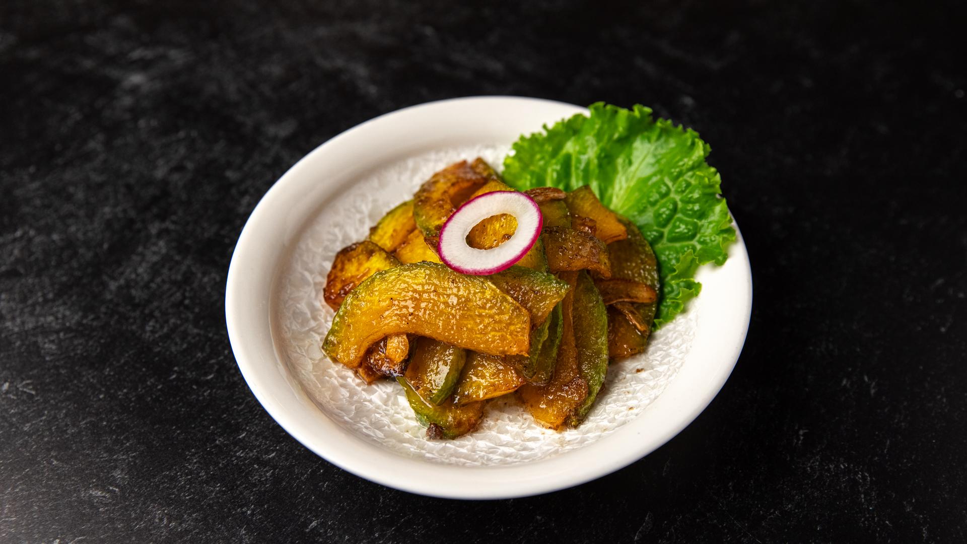 Sautéed Japanese mushrooms with zucchini & spicy sesame sauce