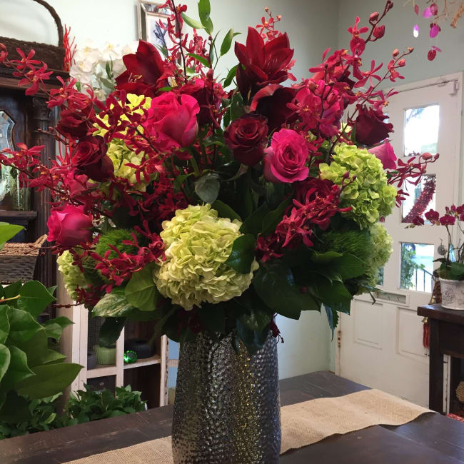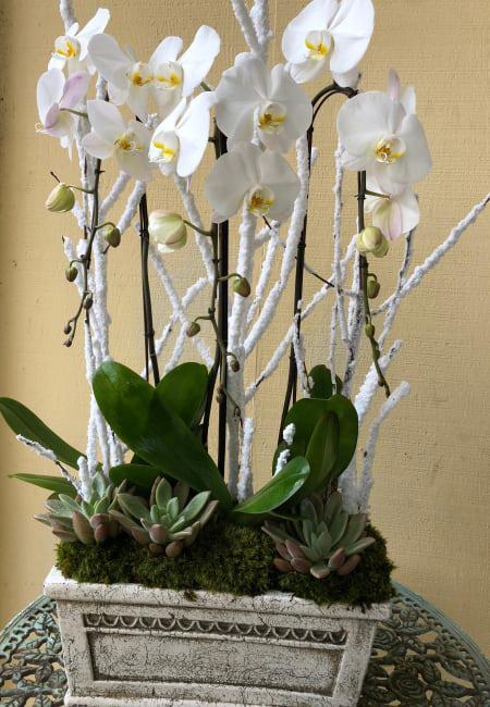 Florentyna's is an upscale flower shop located in Calabasas, California. We carry a large selection of high end flowers and containers, accommodating beautiful arrangements for any occasion. Our flowers are hand picked on a daily basis by our designers, so that any arrangement is assured to be beautifully designed from start to finish. Our floral designs range from using fragrant herbs and English garden roses in our European garden style arrangements; to clean, sophisticated designs with exotic leaves, orchids and (amazing) succulents. If you are looking for local flower delivery call us today to place and order or order online today!